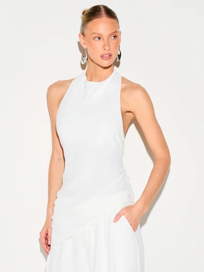KIZN Cowl Neck Halter Top With Open BackKIZN White Crepe Chiffon Corset With Tie Detail