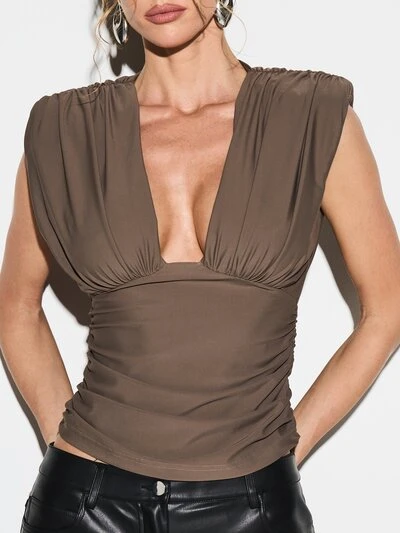 KIZN Sparkle Shoulder Pad Crop Top With Crystal DetailsKIZN Deep V-Neck Shoulder Pad Top With Ruched Waist For Valentine's Day