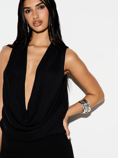 KIZN Patent Vinyl Plunge Corset Top With UnderwireKIZN Sleeveless Cowl Neck Draped Tank