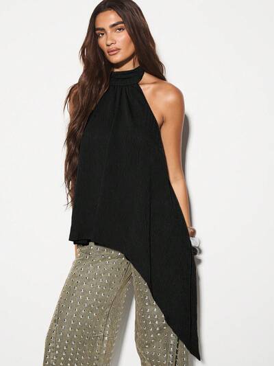 KIZN Halter Neck Asymmetric Hem Top-50%