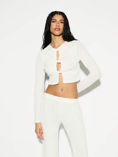 KIZN Twist Front Long Sleeve Ribbed Knit Crop Top-20%
