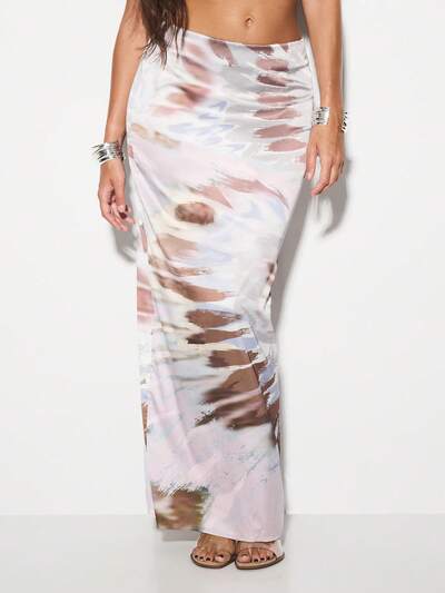 KIZN Abstract Print Maxi Skirt With Front Slit-40%