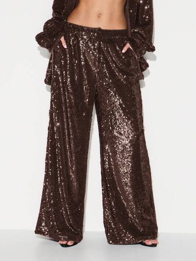 KIZN Wide Leg Sequin Palazzo Pants With RufflesKIZN Animal Print Wide Leg Twill Trousers