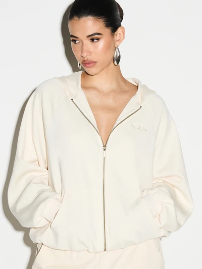 KIZN Cream Full Zip Hoodie With Raglan Sleeves