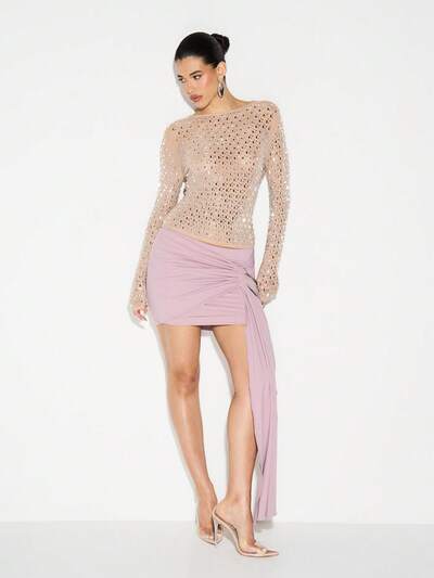 KIZN Brown Sequin Mini Skirt With High Waist