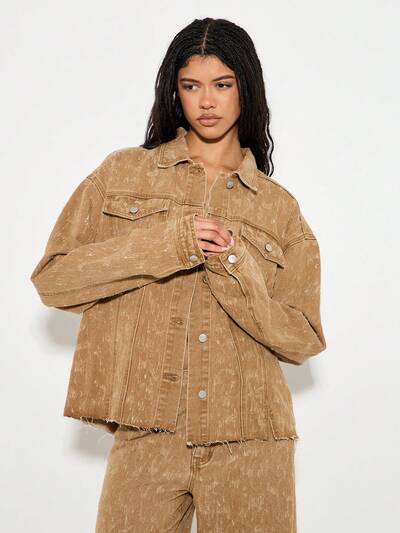 KIZN Oversized Trucker Jacket With Distressed Raw Hem-40%