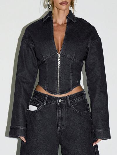 KIZN Zip Front Fitted Denim JacketKIZN Ribbed Scoop Neck Vest Top