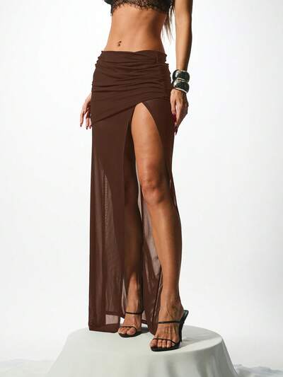 KIZN Sheer Mesh Draped Maxi Skirt With SlitNEW