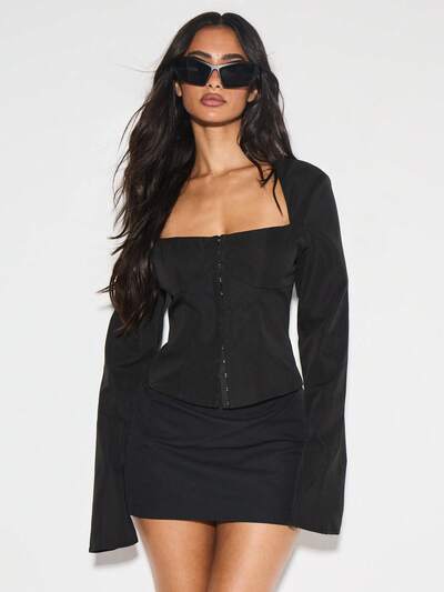 KIZN Tailored Corset Top With Long Bell Sleeves-10%