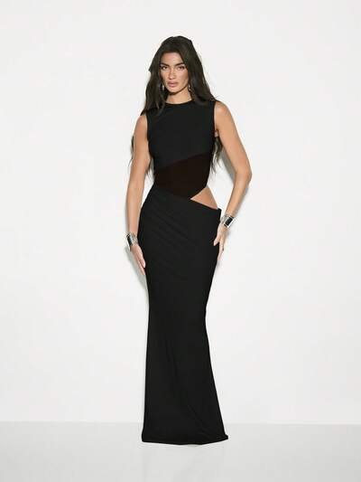 KIZN Elegant Bodycon Cutout Mesh Panel Maxi Dress-10%