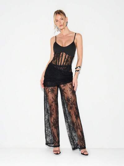 KIZN Lace Wide Leg Trousers With Wrap Detail-50%