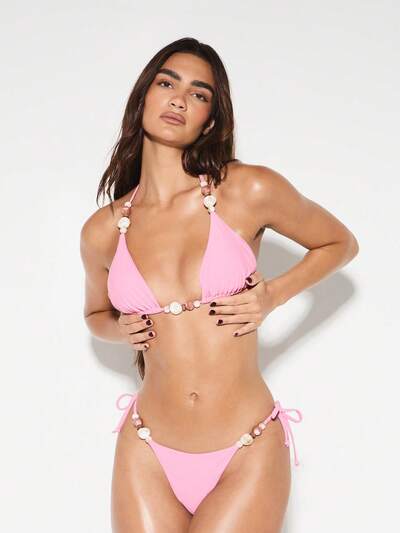 KIZN Triangle Shell Bead Detail Halter Neck Bikini SetNEW