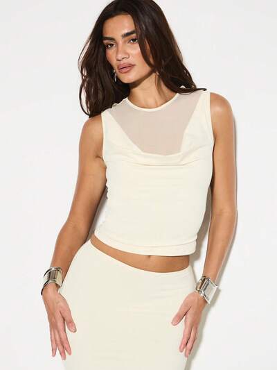 KIZN Sleeveless Cowl Neck Crop Top With Mesh Insert-50%