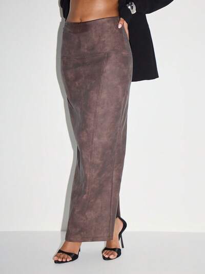 KIZN Jupe longue en cuir vegan avec fente latérale-50%