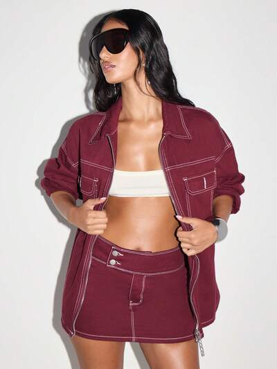 KIZN Giacca in denim oversize con cuciture a contrasto