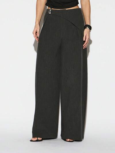 KIZN Calças Palazzo de Pernas Largas com Detalhe de CintoKIZN Vestido curto assimétrico branco com decote halter e gola drapeada